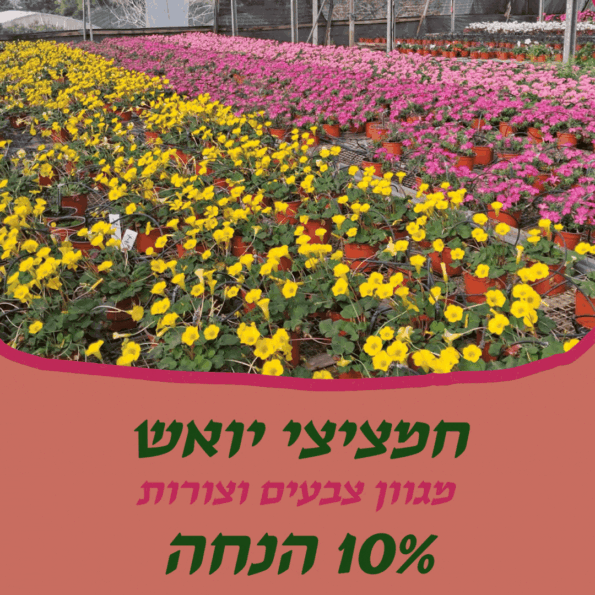 המלאי מתחדש מספר פעמים בשבוע, בהתאם לעונות השנה. בשל המגוון הגדול, לא ניתן לעדכן את האתר באופן שוטף, ולכן המידע המוצג מובא לידיעה בלבד. במידה ויש מוצר ספציפי שאתם מחפשים, מומלץ לוודא שהוא אכן במלאי, טרם ההגעה למשתלה.